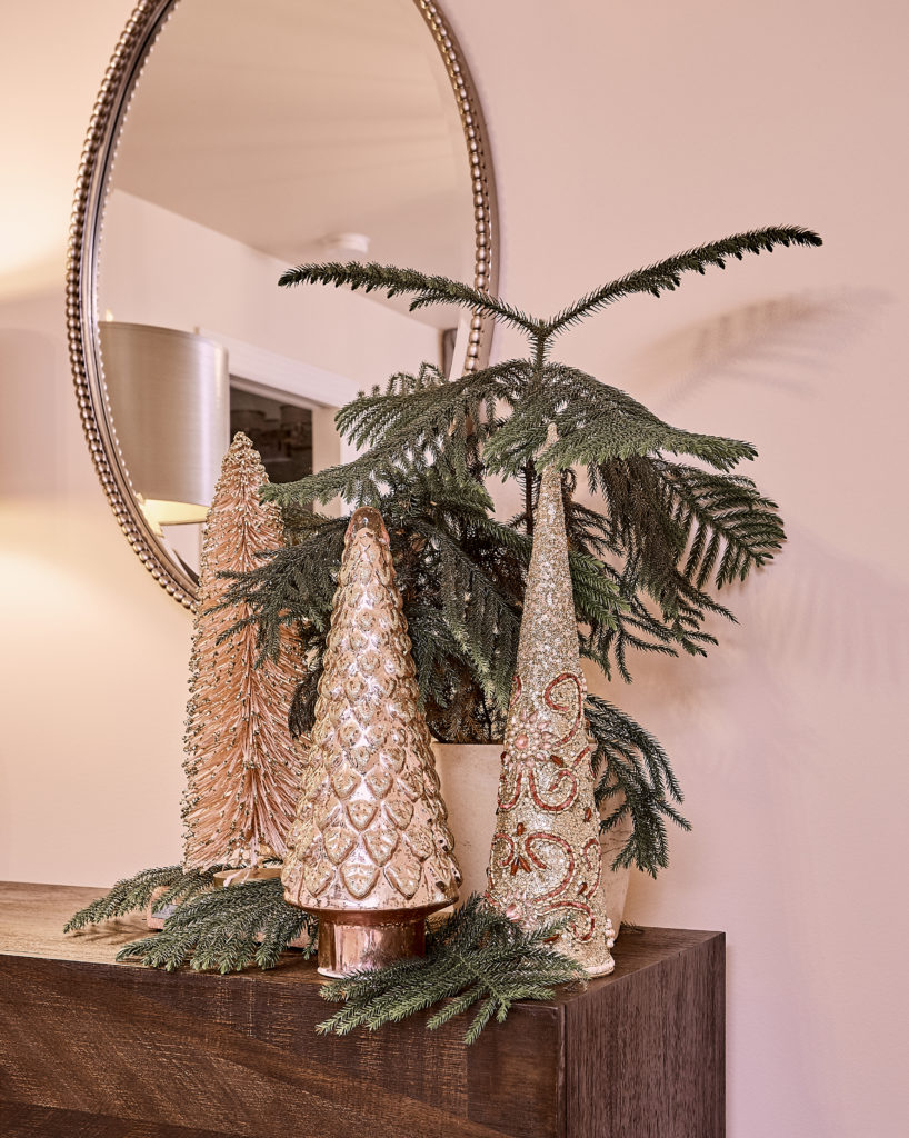 Next, turn your attention to the living room or the room(s) where family and guests will gather. Make them warm, celebratory, and full of reminders of holiday joy. When you’re limited in time and inspiration, concentrate on spaces where most of the hosting and holiday activities will take place.